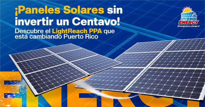 LightReach PPA permite instalar paneles solares y batería sin inversión inicial y pagar menos que LUMA desde el primer día. Hybrid Energy PR lo lleva a tu hogar con ahorro garantizado.
