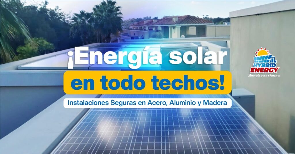 Instalación segura de paneles solares en techos de acero, aluminio y madera. Hybrid Energy PR ofrece ahorro, resiliencia y energía limpia en Puerto Rico.